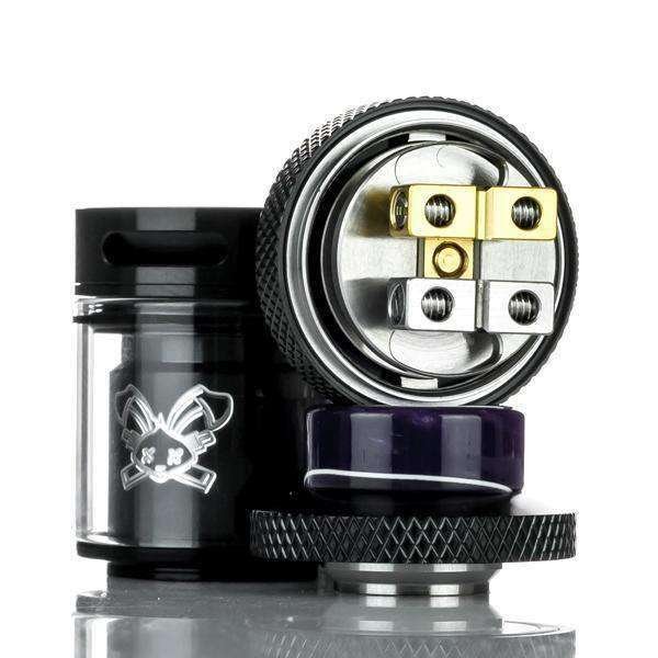 O fluxo de ar entra no RTA Hellvape Dead Rabbit através de um fluxo de ar diagonal ajustável na parte superior, que se concentra no sabor e minimiza a fuga de líquido. O fluxo de ar pode ser ajustado para coils simples e duplas, com acabamento serrilhado facilita o ajuste do fluxo de ar. Para oferecer uma melhor experiência de vaping, vem com uma drip tip 810 mm de diâmetro. Um dos tanques mais vendidos em 2019 e 2020.