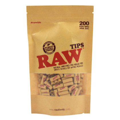 The RAW Pre-Rolled Tips are made from natural, unrefined, chlorine-free paper. This resealable bag includes 200 tips, each of which is cut and pre-rolled following the natural fibrous grains of the paper to ensure a perfectly round, smooth tip.