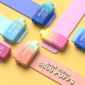 Unik Ultra um vape descartável de 5500 puffs com bateria recarregável de 550mAh, entrada usb tipo C disponível em vários sabores.